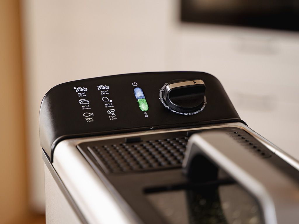 • Wbudowany termostat zapewniający idealną temperaturę smażenia